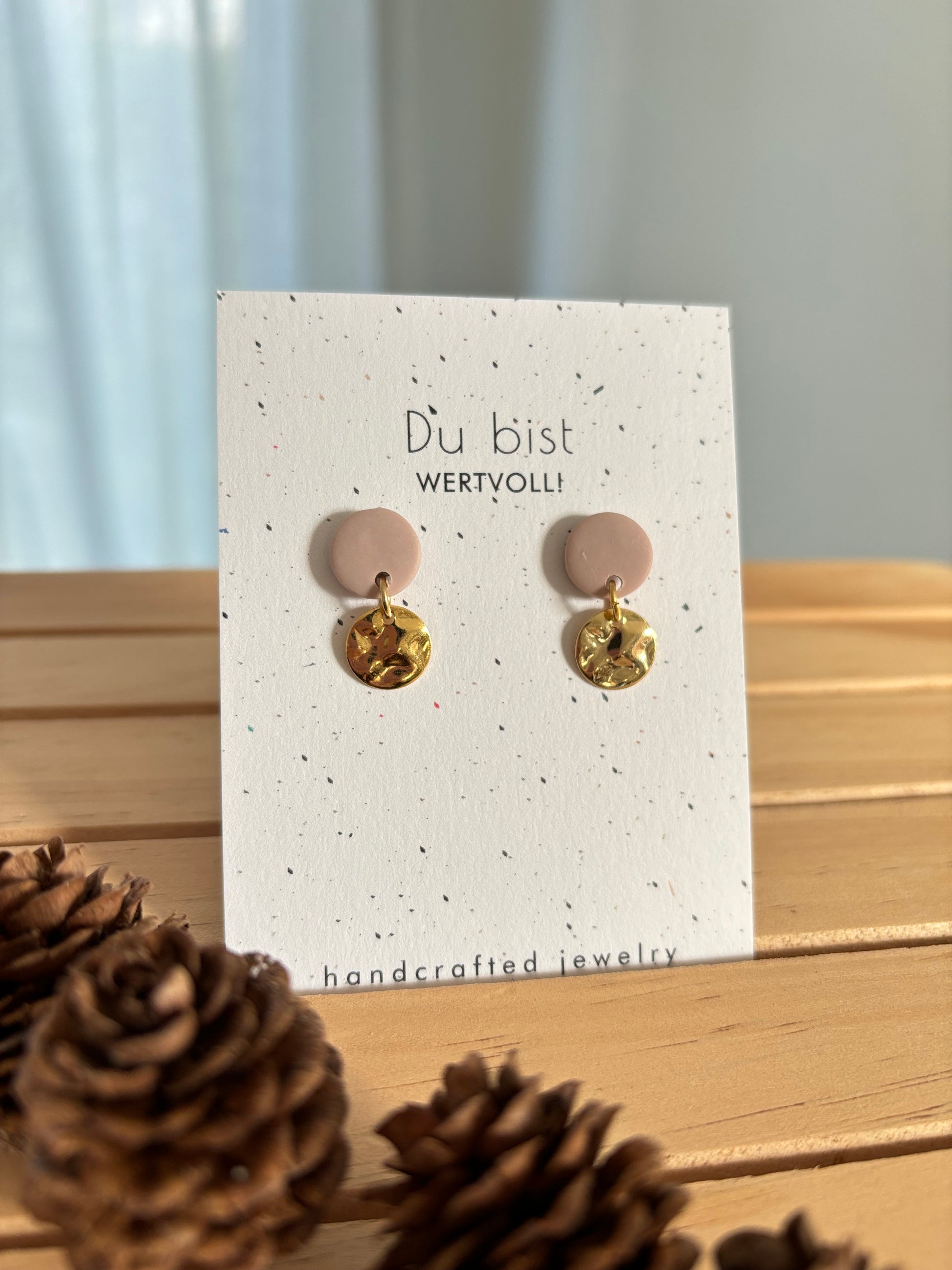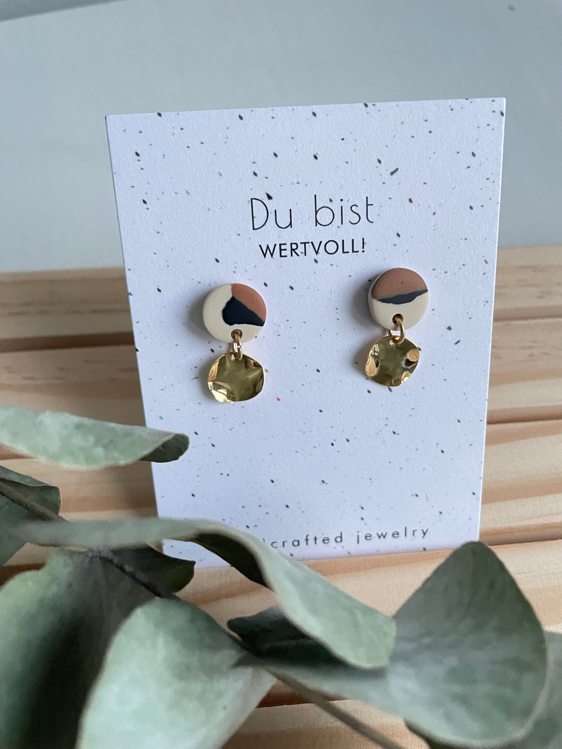 Glatte Polymer-Dots mit geschwungenen, vergoldeten Anhängern