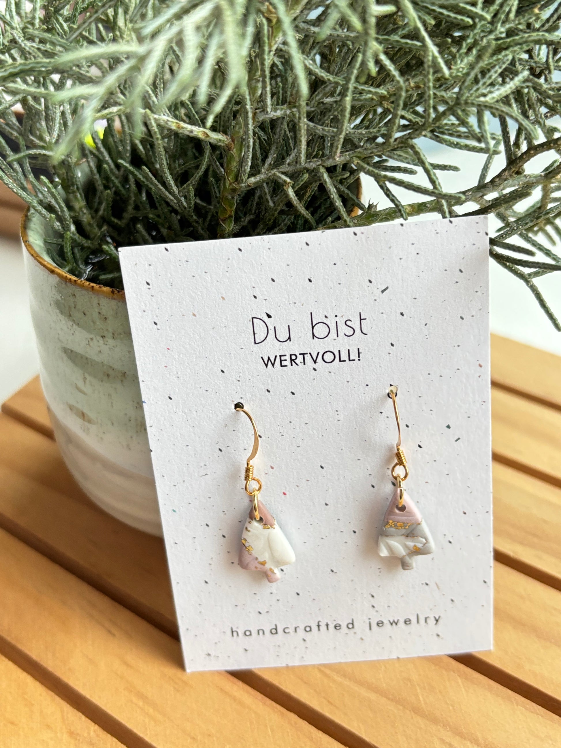 Kleine zarte Tannenbäume in unterschiedlichen Farben mit Blattgold