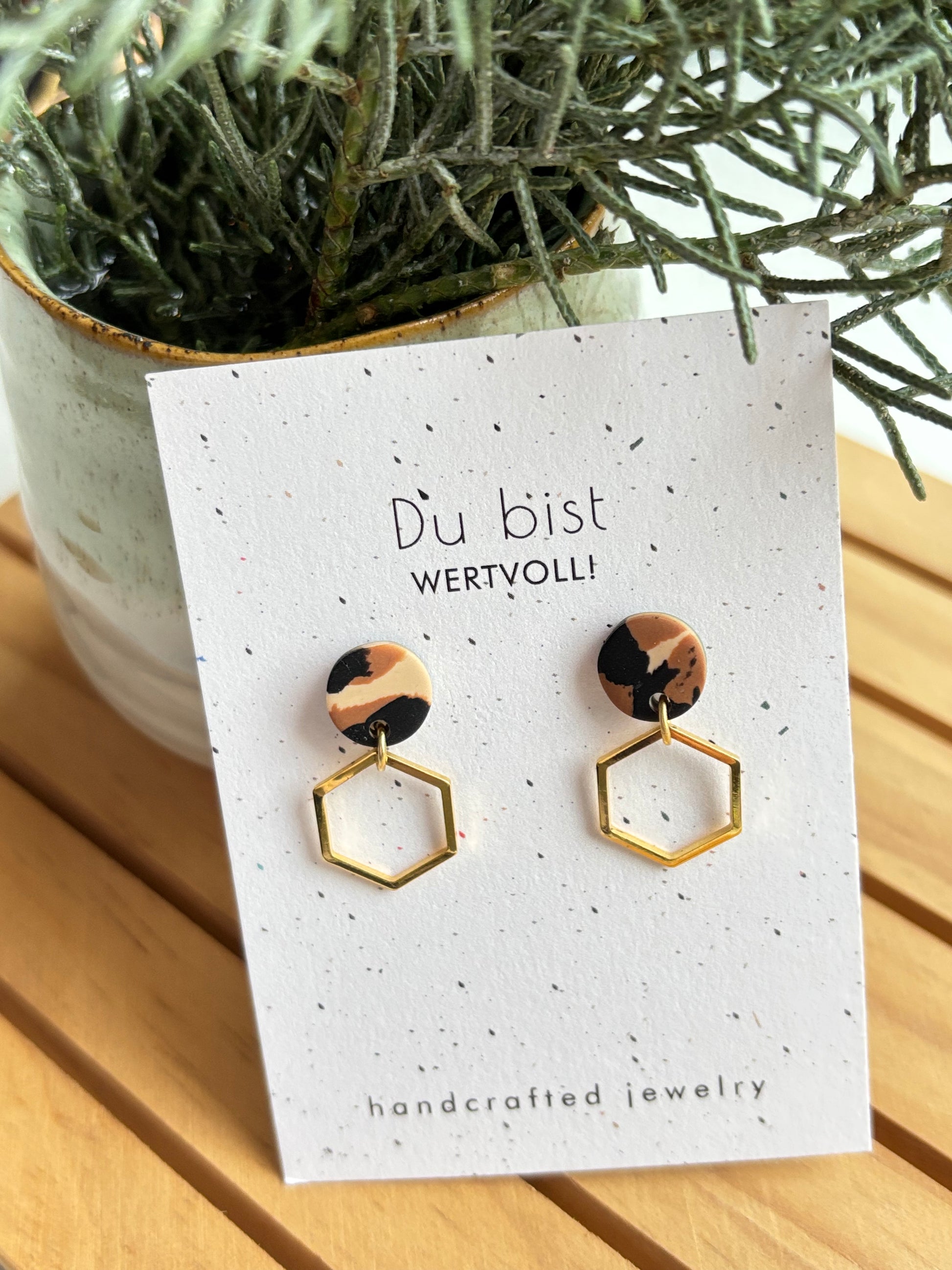 Die eleganten Ohrringe bestehen aus einem Stecker mit strukturierter oder glatter Oberfläche aus Polymer, an dessen Rückseite ein sehr gut verträglicher Edelstahl-Stecker angebracht ist.